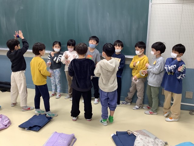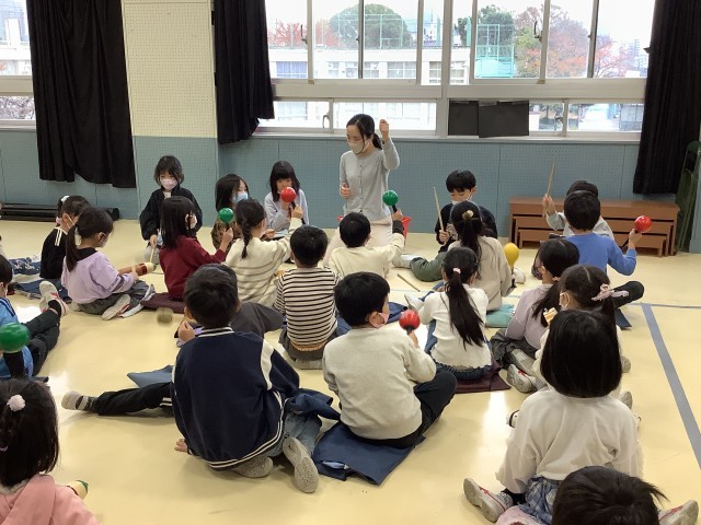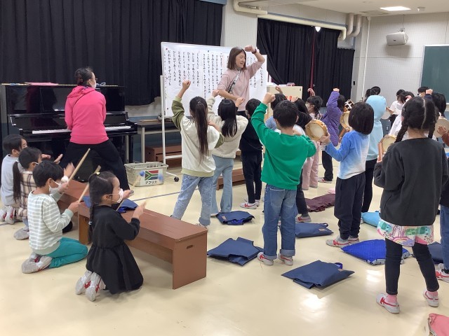 今日から「学習発表会」の特別時間割が始まりました。1年生は多目的室に集まって、それぞれのグループごとに練習をしました。途中で可愛らしい振り付けを入れるなど、本番に向けて、少しずつ仕上げていきます。