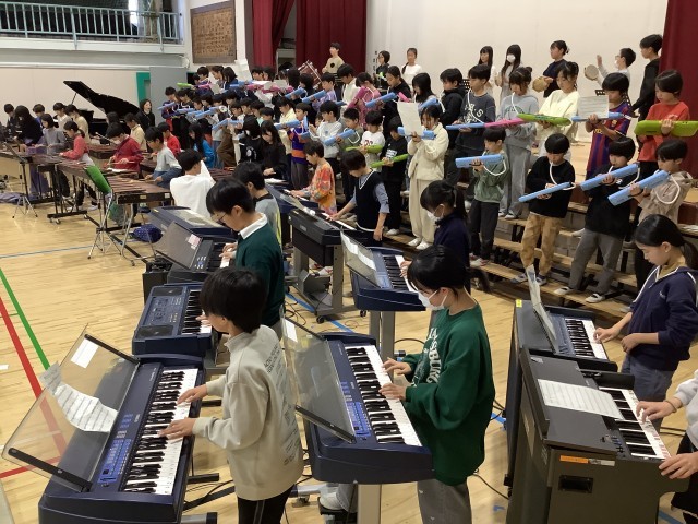 学習発表会がいよいよ1週間後に迫ってきました。5年生の体育館での練習の様子です。5年生は先週3日間の学年閉鎖がありましたが、その遅れを取り戻そうと、子どもたちは音を合わせ、心を合わせながら練習に取り組んでいます。来週の練習で、どこまで仕上がるか、本番が楽しみです。