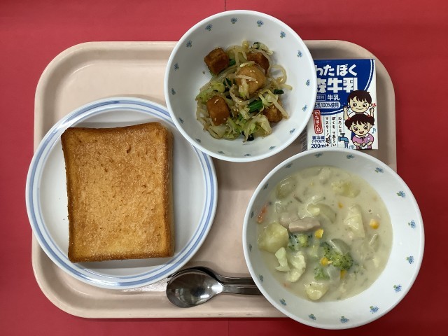 鶏肉(国産) 凍り豆腐(大豆:アメリカ、カナダ) じゃがいも(北海道) 玉ねぎ(北海道) にんじん(青森) 冷凍ホールコーン(北海道) カリフラワー(神奈川) ブロッコリー(長崎) 小松菜(茨城) キャベツ(茨城) 緑豆もやし(栃木)