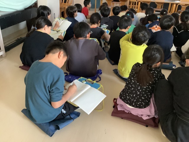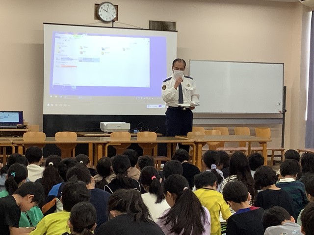 3年生の社会の学習の様子です。今日は警察署の方にゲストティーチャーとしてご来校いただき、DVDを見せていただいたり、事前に考えていた質問に答えていただいたり、仕事のことについて教えていただいたりしました。多くの子が集中して話を聞くことができていました。
