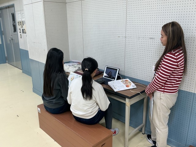 今日、明日の2日間で、5・6年生の全学級が、外国語の学習の一環として、「オンラインブレンディッド学習」に取り組んでいます。これは、少人数のグループごとに、オンラインでALTとの会話を行う学習です。普段の学習で学んだことを生かして、実際の会話を楽しんでいました。写真は本日行った6年生の様子です。