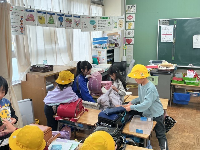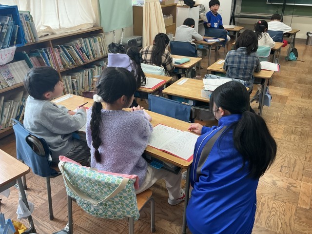 1/19(月)〜21(水)までの3日間、中学校の職場体験学習の一環として、2名の中学生が本校で体験学習を行いました。主に低学年に入ってもらい、子どもたちへの学習支援や生活の補助をしてもらいました。中学生にとっても、低学年の子どもたちにとっても、よい活動ができました。