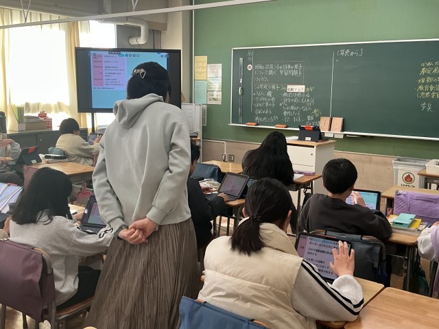 6年生の社会の学習の様子です。今日は「戦争と人々の暮らし」の学習として、昭和20年頃の日本の様子について学習しました。自分が調べたりまとめたりしたことから、学習問題を作っていました。