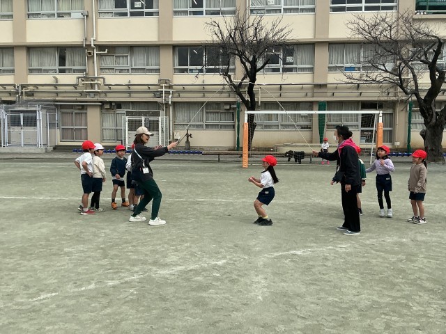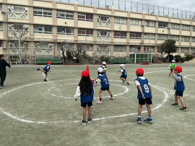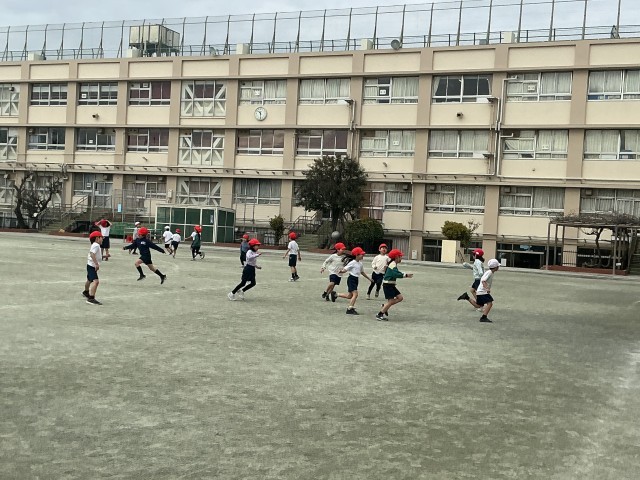 1年生の体育の学習の様子です。今日はクラスごとに「体つくりの運動遊び」として長縄跳びをしたり、「ゲーム」として鬼遊びやボール投げゲームをしたりしました。みんな楽しく、一生懸命運度に取り組んでいて、随所によい動きが見られました。