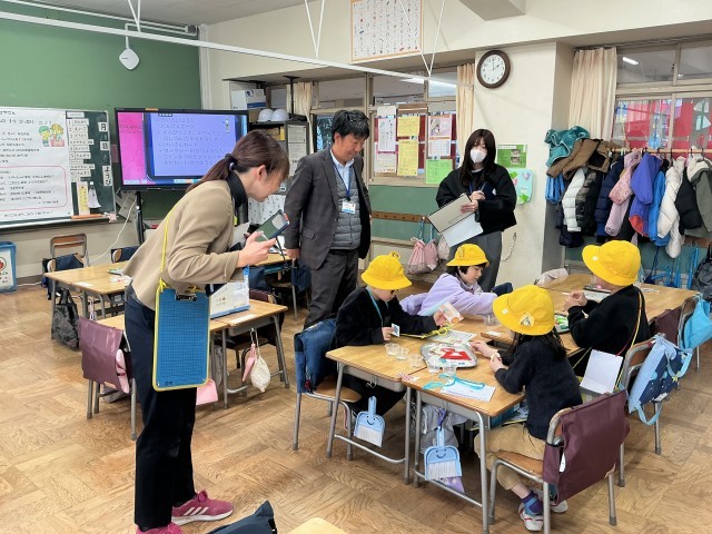 1年生の算数の学習の様子です。ペアやトリオで、例えば「いくらかな?」「おはしでなんつぶつまめるか」「マス計算タイムアタック」「両替屋さん」など、たくさんのコーナーで、しっかりと算数の学習を進めていました。声を掛け合いながら、仲よくしっかりと活動に取り組みました。