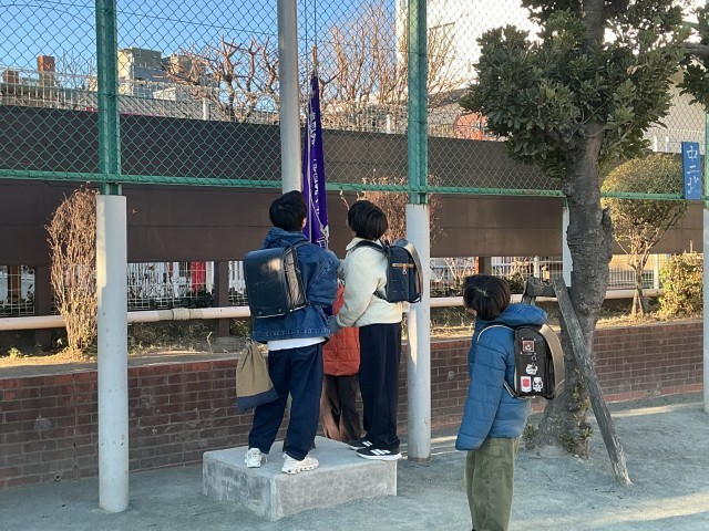 2月になりました。まもなく、暦の上では立春を迎えますが、まだまだ寒い日が続いています。体調を崩している子もいて、心配ではありますが、登校している子は、元気に過ごしています。引き続き体調を整えて、元気に登校してほしいと願っています。6年生が校旗をあげることを忘れずに行っています。