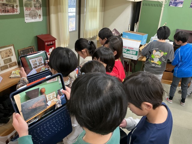 3年生の社会の学習の様子です。今日は「かわる道具と暮らし」の学習で、校内で社会科の授業を研究している教員が授業をしました。教室で七輪や黒電話などの説明をした後に、校内の資料室に行ってみました。初めて資料室に入る子がほとんどで、興味津々な様子で、資料室の探索をしている様子が見られました。