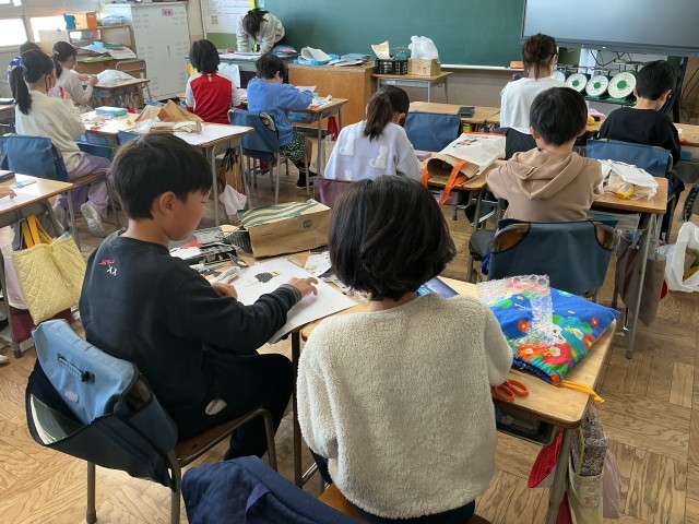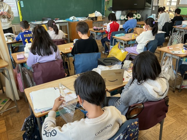 3年生の図工の学習の様子です。今日は「いろいろうつして」という学習をしました。今日は、子どもたちが家庭から持参した緩衝材や毛糸など、様々な材料を紙に貼りました。今後は版画の学習に繋げていきます。今後の展開がとても楽しみです。