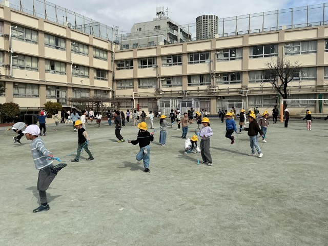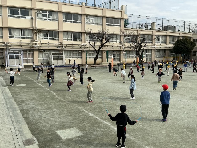 今週と来週は「なわとびweek」です。4日目の今日は、昨日に引き続き、1〜3年生が取り組みました。寒い中ではありましたが、3分間(練習時間も入れると6分間)は、一生懸命短縄跳びに取り組んでいました。