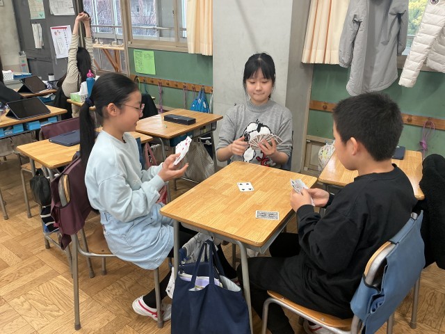 今日は朝から、1日中雨が降っています。中休みに予定していた4〜6年生の「なわとびweek」は中止となってしまいました。子どもたちは、校舎内でカードゲームをしたり、クラス遊びをしたり、読み放題型電子図書館を利用したりしながら過ごしていました。