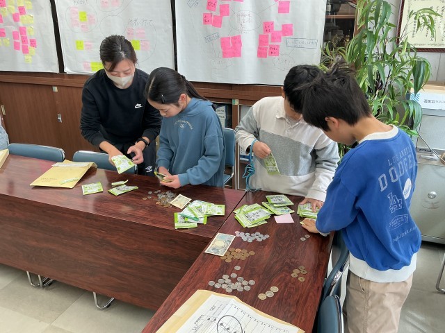 先週の火〜木の3日間に、ユニセフ募金を行いました。今日は、中休みに代表委員会の子が校長室に集まって、募金額の集計作業を行いました。3日間の前半は、連休明け(本校は土曜日授業を行なった関係で月曜日は振替休業日でした)ということもあり、募金が集まるか心配していましたが、たくさんの募金が集まりました。ご協力ありがとうございました。