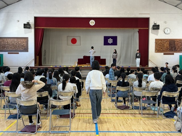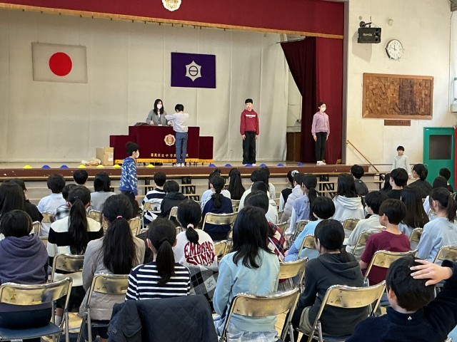 今日の6年生の卒業式練習の様子です。今日は舞台上で卒業証書を受け取る場面を中心に練習をしました。自席を立ってから来賓に一礼、順番で舞台上に上がり、呼名されて返事をし、正面で証書をもらって舞台を下り、教職員に一礼をして、自席に戻るという一連の流れを、一人ひとりが経験しました。しっかりと練習して、最高の卒業式にしましょう。
