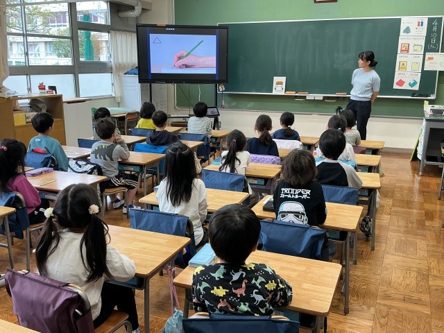 今日の1年生の教室での学習の様子です。月曜日の入学式から5日目、様々なことを学んでいますが、写真は正しい鉛筆の持ち方を学習している様子です。学習する内容も多くありますが、一つ一つのことを、時間をかけながら、丁寧に指導・支援していきます。