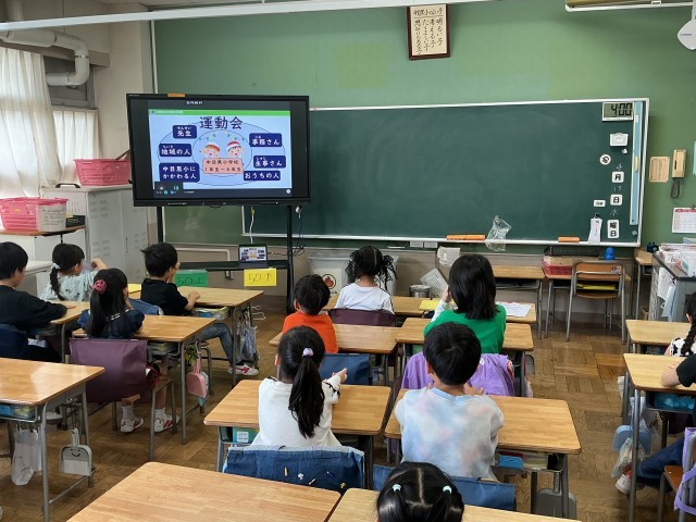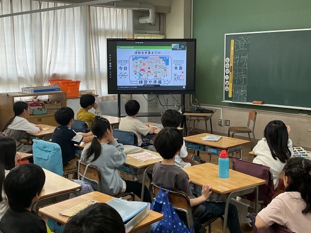 今日は、朝の時間を活用して、全学級を対象に、オンラインで「運動会オリエンテーション」を行いました。運動会までのスケジュールや種目、めあてについて共有しました。また、教員の想いである、3つの「きょうそう」(「競争:真剣勝負」「共創:力を合わせる」「協奏:よさが輝き合う」)という願いを伝えました。