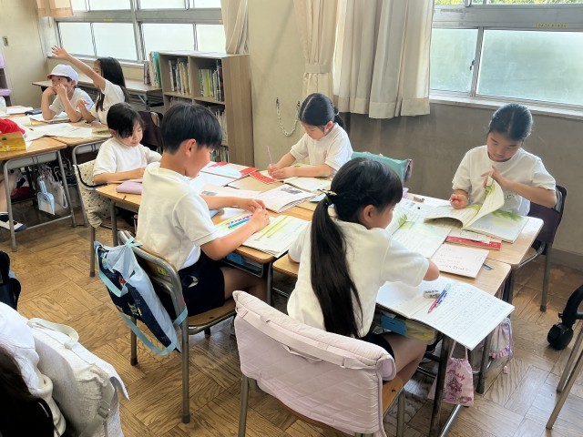 2年生の国語の学習の様子です。2年生は今、「ふきのとう」の学習をしています。場面の様子を想像しながら、音読の仕方の工夫を考えたり、役割を分担して音読をし合ったりしていきます。