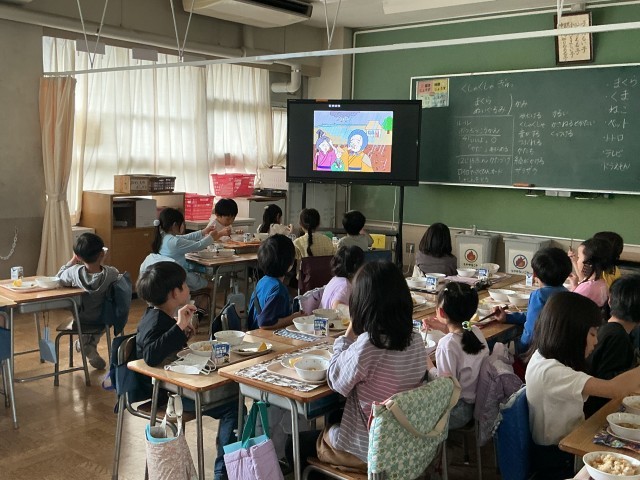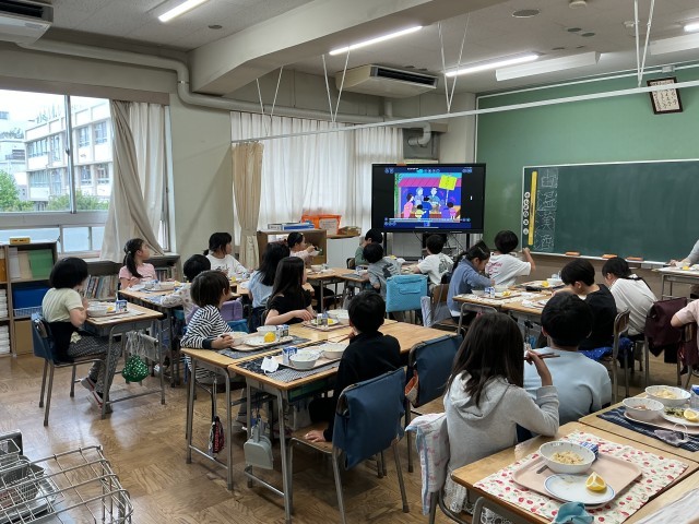 今日の給食のメニューの1つに、「たけのこご飯」が出ました。たけのこは、昔は目黒区の名産品で、目黒のたけのこは「太く、柔らかく、美味しい」と評判だったそうです。そんな説明も含め、栄養士が「たけのこ紹介動画」を作成して、給食の時にみんなで視聴しました。そういえば、本校の通知表は「のびゆくたけのこ」という名称ですし、縦割り班は「たけのこ班」という名称です!