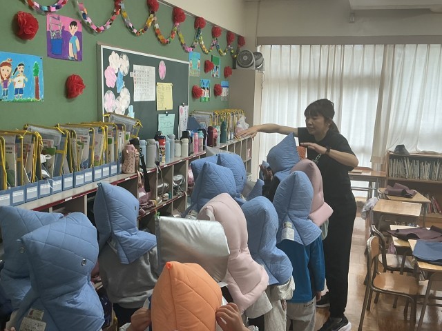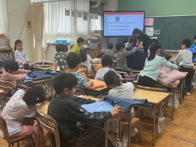 今日は、今年度1回目の「避難訓練」がありました。1年生は、避難訓練に向けて、防災頭巾のかぶり方や避難の時の並び方、避難場所までの歩き方などを確認しました。いつ、どんな時に、何が起きても、「自分の身は自分で守る」行動を取ることができるよう、声を掛けていきます。