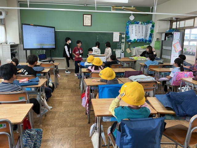 今日は、4時間目に縦割り班活動の顔合わせ会を行いました。本校は比較的規模の大きい学校ではありますが、縦割り班による異学年活動を重視しています。異学年で関わることで、上級生はリーダーシップや思いやりの心を育んだり、下級生は上級生への憧れの気持ちや協力することの大切さを学んだりします。