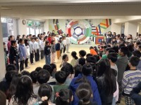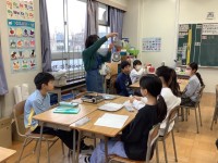 今日は地元のよさこいチームである「中目黒MGよさこい」の皆様にご来校いただき、3年生がよさこいを教えていただきました。今年も3年生を中心とした中目黒小有志で、8/3(日)の中目黒夏まつりに参加する予定です。体育館中に鳴子の音が鳴り響きました。