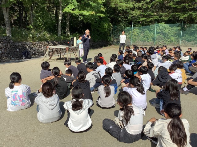 午後は清泉寮でソフトクリームを食べたり、国立天文台ベジタボールウィズに行ったりした後、宿舎で林業体験のオリエンテーションがありました。明日、実際に林業体験させていただく方に宿舎まで来ていただき、様々なことを教えていただきました。