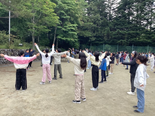 5年生の八ヶ岳自然宿泊体験教室の2日目です。今日は美し森展望台からまきば公園までハイキングをしました。空気が澄んでいて、川を渡ったり、牧場で牛を見ながら歩いたり、アップダウンもありましたが、全員が完歩することができました。