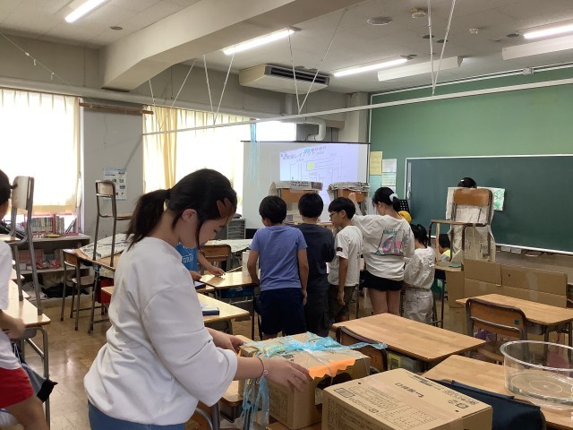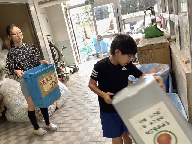 いよいよ全校フェスティバルが今週の金曜日(10/3)に迫ってきました。今日は3時間目に、縦割り班で準備の時間を設定しました。ポスターを作ったり、ペットボトルの準備をしたり、何やらコースを作ったりしていました。今日も高学年が、それぞれの班をしっかりとまとめてくれていました。