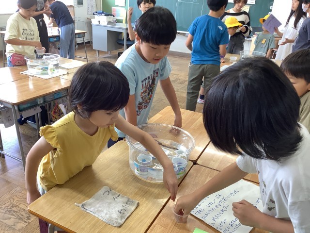 2年生の算数の学習の様子です。2年生はリットルやデシリットル、ミリリットルなどの「水のかさ」の学習をしています。実際にどのくらいの量なのか、水の量を確認したり、足し算や引き算をの学習をしたりしています。
