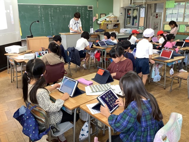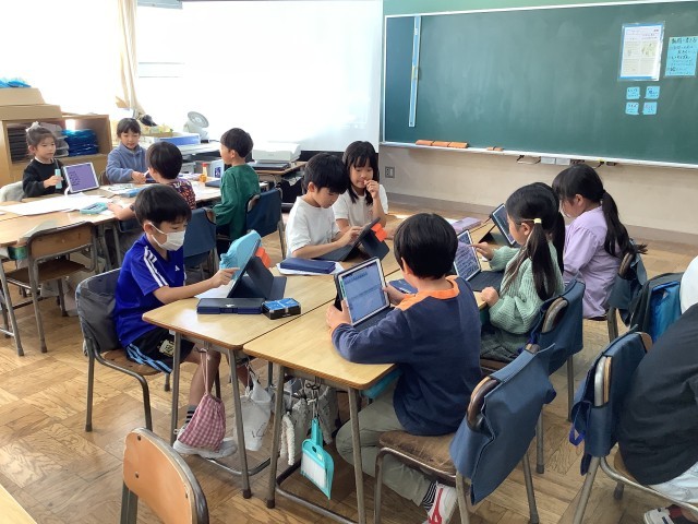 1年生の生活科の学習の様子です。生活科では今、「あきが やってきた」という学習をしています。自分でテーマを決めて、本やiPadなどを活用しながら、調べ学習を進めています。資料を上手に活用しながら、自分の興味・関心に応じて、学習を進めていくことができるといいですね。