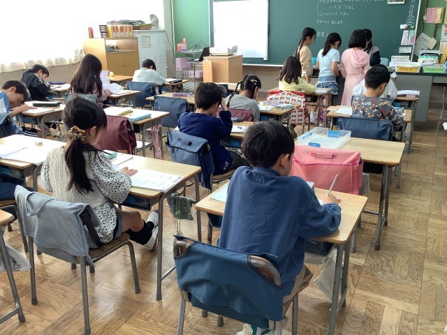 6時間目は、マイタイム(自学自習タイム)でした。40分授業午前5時間制で生み出した時間を活用するために、子どもたちは自分で学習計画を立て、一人ひとりが個別学習を進めていました。