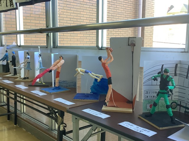 今、6年生の教室前の廊下付近には、6年生が図工で作った「未来のわたし」という作品が展示されています。これは、自分の未来の姿や夢を思い浮かべて、動きのあるポーズにして、紙粘土や絵の具、布や画用紙など、様々な材料を使って、表現を工夫して作った作品です。ご来校の際には、是非、ご覧ください。