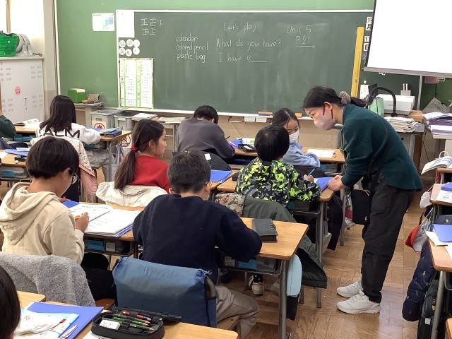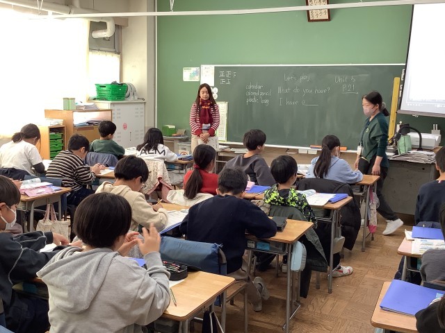 4年生の外国語活動の学習の様子です。ALTと外国語講師の2名の先生と一緒に学習しています。様々なアクティビティを取り入れ、楽しく学ぶことができるよう、工夫しながら学習を進めています。ALTの先生の発音の仕方をよく聞いて、子どもたちも気を付けながら、繰り返し発音していました。