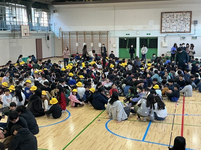 今朝は全校で児童集会がありました。毎回、集会委員会の子どもたちが、全校児童が楽しむことができるようなゲームを考えています。今日は「エブリバディ・アップ・ゲーム」を行いました。異学年の子とも関わりながら、楽しく取り組んでいました。