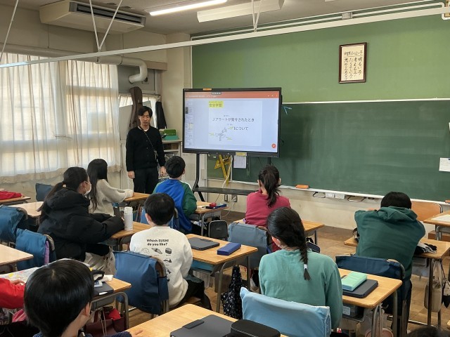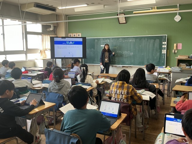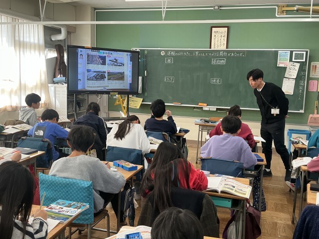 5年生の社会の学習の様子です。5年生は今、「これからの工業生産」という学習をしています。今日は、「運輸と工業には、どのような関係があるのだろうか」という学習問題に対して、個人で考えたり、考えを共有し合ったりしていました。