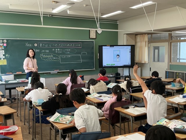 3年生の算数の学習の様子です。3年生は今、「重さ」の学習をしています。今日は、いくつかの文房具の重さを比べるには、どのような方法があるか、みんなで意見を出し合いました。色々な意見が、活発に出ていました。
