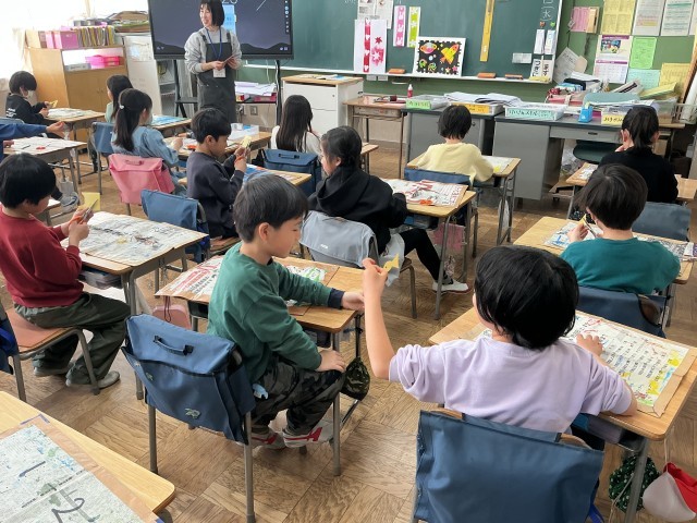 3年生の図工の学習の様子です。今日は「いろいろうつして」という学習をしました。今日は、子どもたちが家庭から持参した緩衝材や毛糸など、様々な材料を紙に貼りました。今後は版画の学習に繋げていきます。今後の展開がとても楽しみです。
