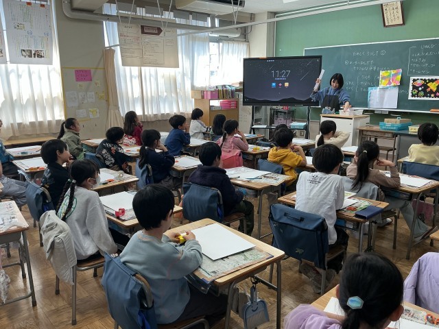 2年生の国語の学習の様子です。2年生は今、「スーホの白い馬」の学習をしています。物語の舞台であるモンゴルについて学んだり、登場人物の様子を想像したりしました。集中して考えている子がたくさんいました。