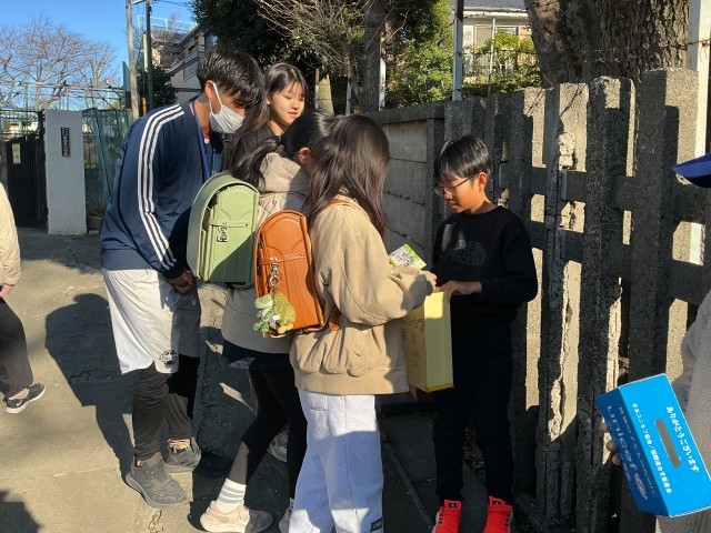 今日までの3日間、本校ではユニセフ募金を集めていました。写真は裏門での募金活動の様子です。代表委員会の子が、登校してくる友達に、募金の呼びかけをしました。前半は天気が悪く、活動しにくい日もありましたが、代表委員会の子もとてもよく頑張り、多くの子が協力してくれました。