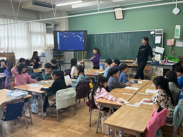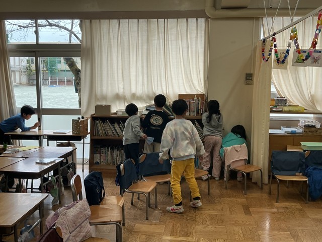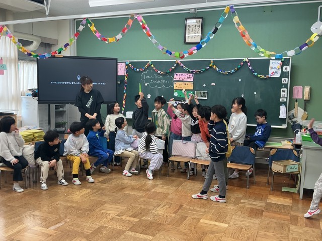 学年末を迎え、多くの学年、学級では、1年間を振り返って、お楽しみ会をしています。写真は1年生のお楽しみ会の様子です。「宝探し」をしたり、「だれがいなくなったかゲーム」をしたり、「お笑い会」をしたりしていました。どの学年も、今年度1年間、とてもよくがんばりました。