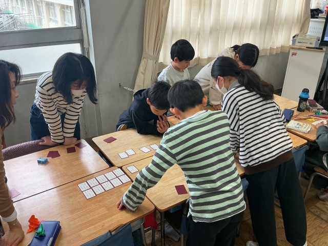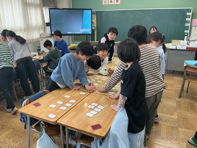 3年生の学習の様子です。今日はお楽しみ会的に、学習のまとめとして、「百人一首大会」をしました。様々な場面で百人一首に取り組んでおり、上の句を詠み上げただけで、下の句を想像して、札を取ることができる子もいました。子どもたちも真剣に、楽しんで取り組んでいました。