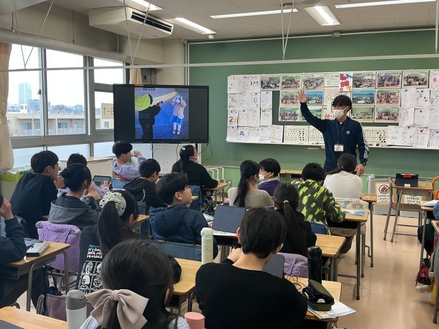 5年生の道徳の学習の様子です。今日は「千羽づる」という資料を用いて、【正義・誠実】に関する学習をしました。登場人物の行動について、自分の考えを学習用情報端末に入力したり、黒板に心のバロメーターで考えを発表したり、全体で議論し合ったりしました。
