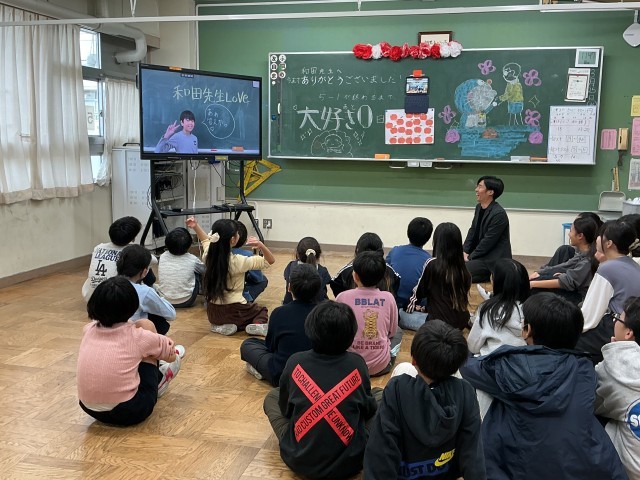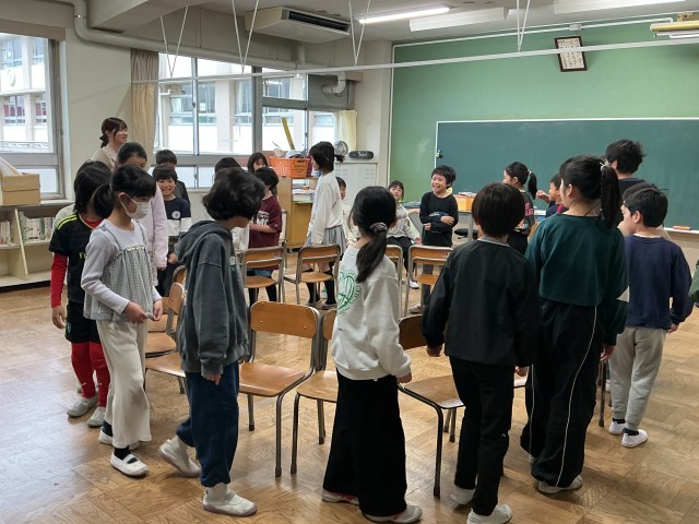 今日は今年度の最終登校日ということで、多くの学級で、お楽しみ会やお別れ会を行っていました。毎年度、全学年でクラス替えを行っている本校では、このクラスで過ごすのも、今日で最後となります。また、今日でお別れになる教員もいます。みんなで最後の時間を楽しく過ごしていました。