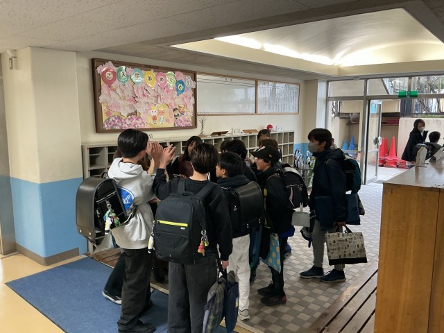 6年生と1〜5年生が、中目黒小学校内で、正式に関わる機会があるのは、今日で最後になります。1〜5年生は、明日の卒業式に参列することができない分、毎年恒例となっていますが、各教室前の廊下で、6年生の卒業を祝い、6年生送り出す機会を設定しています。各学年から卒業を祝う温かい拍手と声かけがありました。