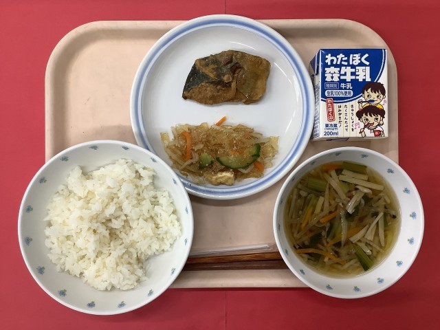 さば(長崎) 油揚げ(大豆:愛知、佐賀) 精白米(秋田) 玄米(秋田) 生姜(高知) にんじん(北海道、青森、茨城) きゅうり(宮崎) 緑豆もやし(栃木) 干し椎茸(国産) たけのこ(国産) 大根(千葉) えのきたけ(長野) 長ねぎ(山形) 小松菜(茨城)