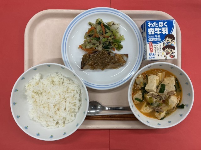 さば(欧州産) 生わかめ(鳴門) 木綿豆腐(大豆:愛知、佐賀) 精白米(秋田) 玄米(秋田) こんにゃく(こんにゃく芋:群馬) 里芋(埼玉) 生姜(高知) 緑豆もやし(静岡) 小松菜(東京) キャベツ(神奈川) 大根(千葉) 長ネギ(茨城)