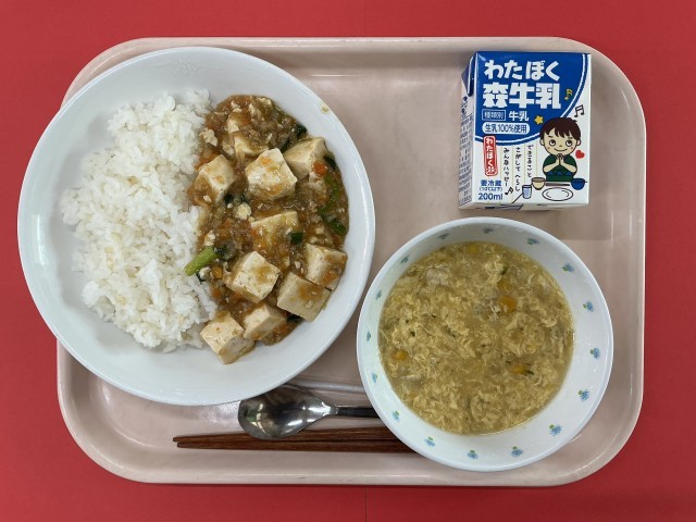 今日は アースデイの日です。アースデイは、地球の環境を守るための活動をします。給食では、いつもは捨ててしまう野菜の皮を使ってマーボー豆腐を作りました。野菜の汚れた部分は調理員さんがきれいになるまで洗ってくださいました。
