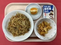 牛乳やきそばビーンズポテト果物(早香)主な食材の産地>豚肉(国産) 青のり(愛知) 大豆(北海道) じゃがいも(北海道) 干し椎茸(国産)  にんじん(北海道、青森、茨城) 緑豆もやし(栃木) ...