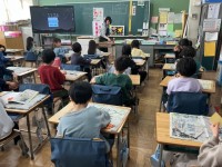 目黒区では小学校1年生から英語の音声や基本的な表現に慣れ親しむことができるよう、1・2年生でも年間15時間程度の外国語活動の時間を設定しています。写真は2年生の学習の様子です。動画を見ながらダンスをし...
