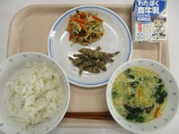 3月13日 ご飯・わかさぎの磯辺揚げ・高野豆腐のごま酢和え・にらたま汁・牛乳