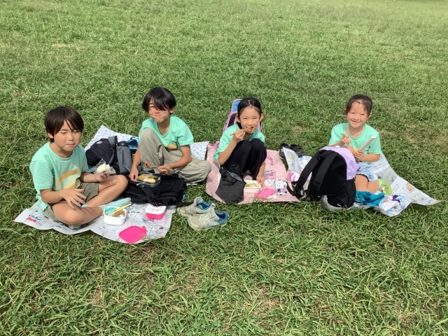お弁当は、海の見える広々として芝生の公園で美味しくいただきました。