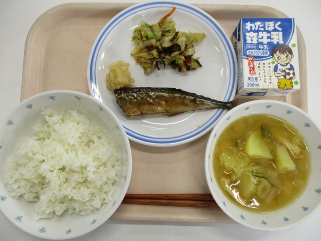 10月14日 ご飯・さんまの塩焼き 大根おろし・野菜のこんぶ和え・みそ汁・牛乳